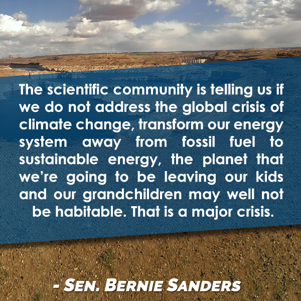 The scientific community is telling us if we do not address the global crisis of climate change, transform our energy system away from fossil fuel to sustainable energy, the planet that we’re going to be leaving our kids and our grandchildren may well not be habitable. That is a major crisis.”